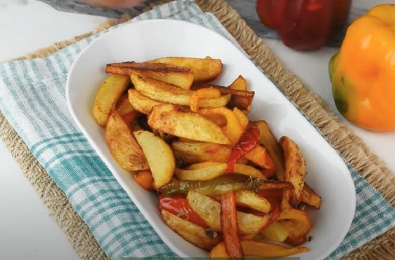 Ce plat est préparé à base de pommes de terre et de poivrons rouges, jaunes et verts, que l’on fait revenir dans une belle quantité d’huile d’olive. Selon les goûts, on peut y ajouter de l’ail, des oignons, des olives ou même des câpres. C’est un plat qui peut accompagner des viandes ou du poisson, mais qui peut également être servi en plat principal. C’est une préparation très simple, mais, néanmoins pleine de saveurs ! Un vrai régal pour les papilles !