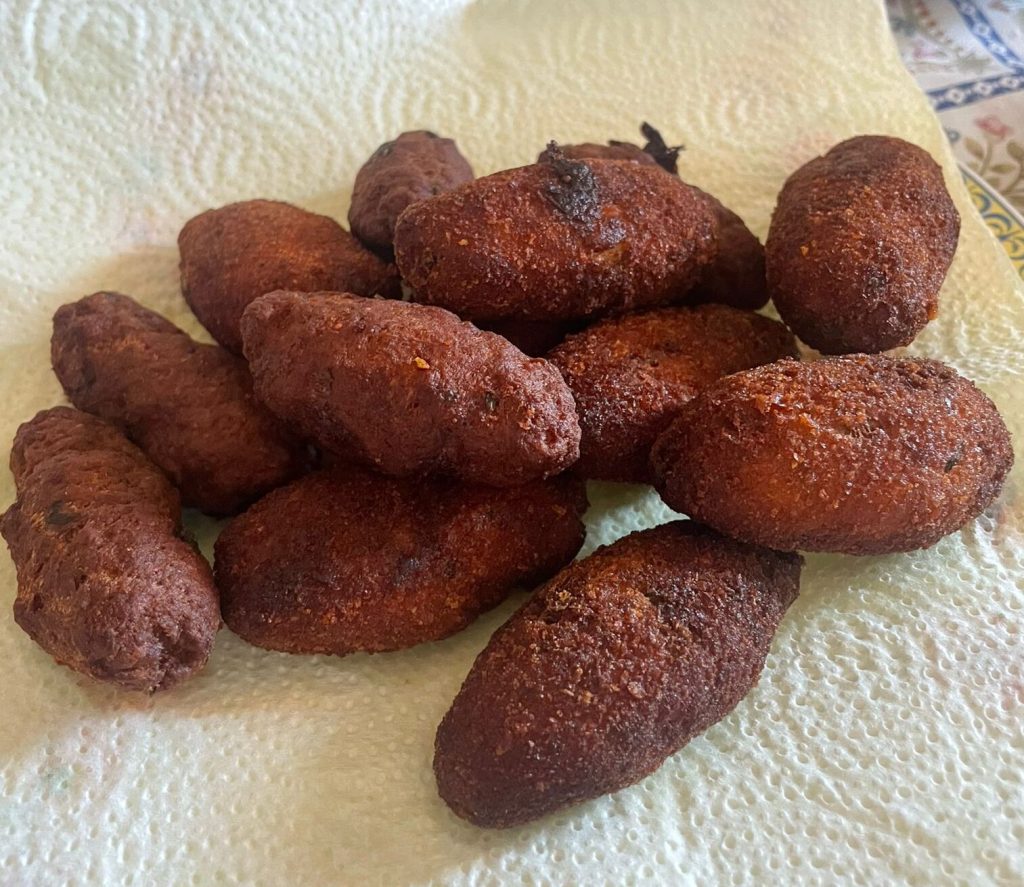 Cette préparation est la même que pour les boulettes de viande que l’on met à cuire dans la sauce tomate. Elles sont faites à base de pain, de viande, d’ail, de persil, de parmesan, d’œufs et on les fait frire dans de l’huile d’olive.