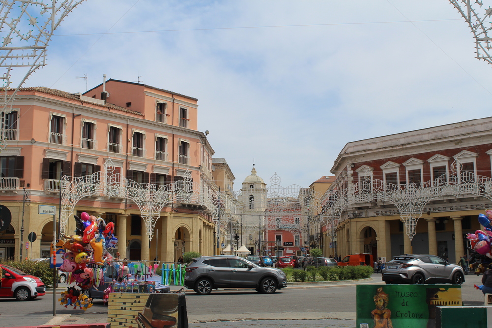 Ainsi, explorer le Vieux Crotone, c’est se perdre dans ses ruelles, chaque pas permet de découvrir la richesse de l’histoire calabraise. La Place Pythagore, nichée au cœur de Crotone, offre une plongée dans l’histoire méditerranéenne. Bordée de bâtiments colorés et de cafés animés, elle est le témoin vivant où le passé rencontre le présent. Au centre de cette place, se trouve une statue dédiée au célèbre mathématicien Pythagore. Les terrasses des cafés et restaurants donnent sur des vues imprenables. L’église située à proximité de la Place Pythagore à Crotone est connue sous le nom de la Basilique-Cathédrale de Crotone, ou en italien, la Basilica Cattedrale di Santa Maria Assunta et San Dionigi. Cette basilique cathédrale fut construite avec les pierres du Temple d’Héra. Importante dans la vie de Crotone, par l’histoire de sa Madone, l’église fête sa Vierge Marie pendant 2 jours au mois mai. La procession de la Madone de Capo Colonna se fait sur 15 km, son Icone étant très lourde, elle est transportée par des bœufs et ensuite sur les épaules d’homme. Pour faire honneur à la Madone, la ville est entièrement illuminée.